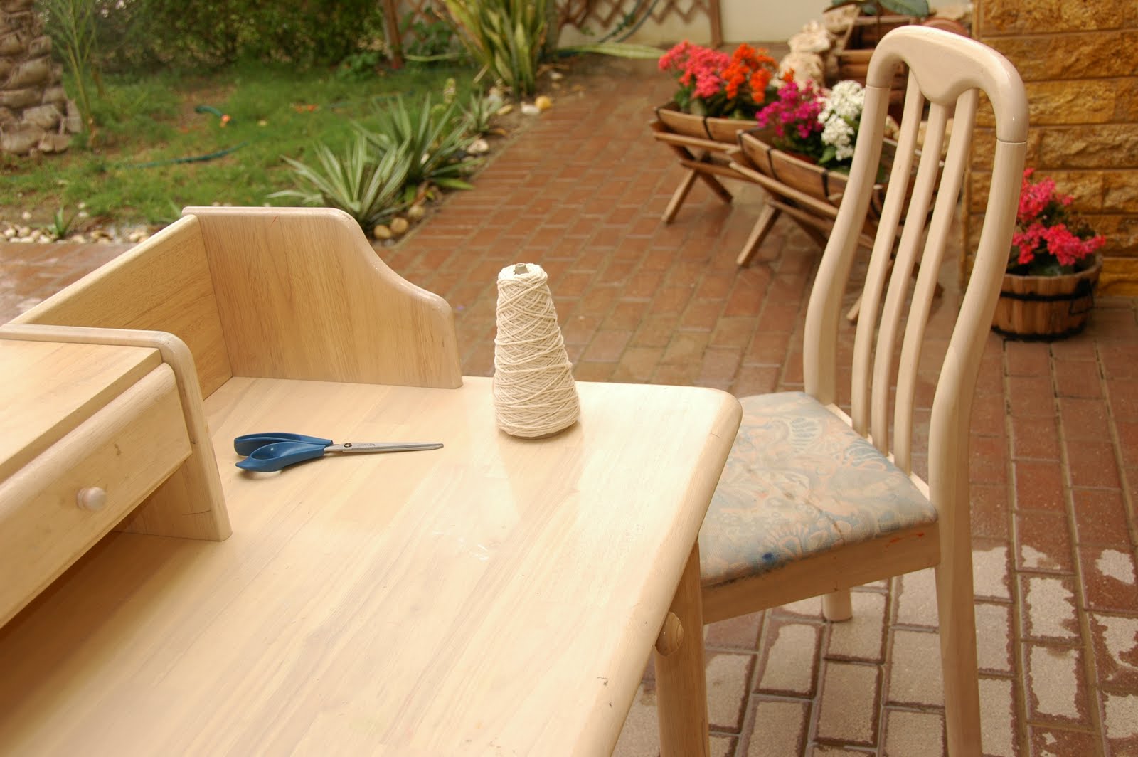 Un vēl. Vakardien manā īpašumā nonāca tīri simpātisks galdiņš ar krēslu, kuru domāju pārkrāsot, un izmantot kā šujamšīngaldu.