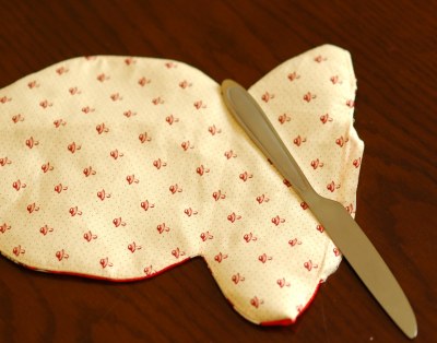 Izgriežam uz otru pusi. Man ir pazudis mans speciālais šujamrīks šādiem gadījumiem, tāpēc izlīdzos ar virtuves naža spalu:)