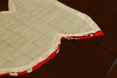 Nošujam, atstājot piegrieztnē atzīmēto posmu neaizšūtu. Nogludinām, nogriežam lieko vīļu daļu, izliekuma vietās iegriežot mazus trīsstūrīšus.