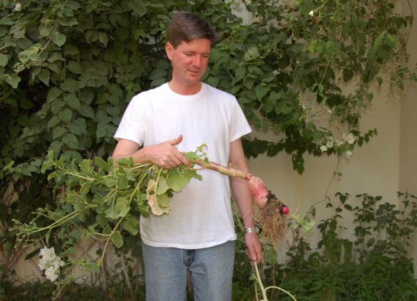 Un šeit man ir publiski jāatvainojas redīsam, kuru nepamatoti apvainoju un nosaucu par “košuma krūmu”. Re, cik varens tas tomēr ir izaudzis, un pat paspējis apbērnoties. Garšo droši vien pēc suņa vai putuplasta, jo, par kādu gan sulīgumu varam runāt 40 grādu karstumā….