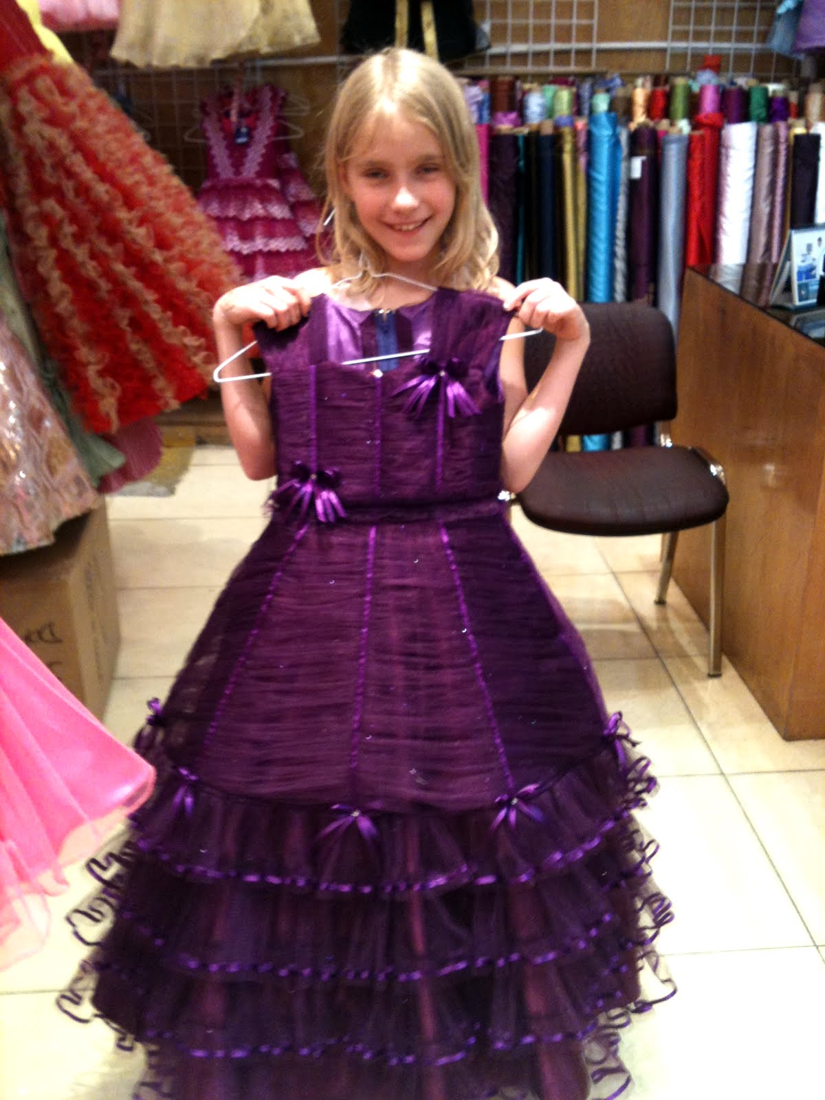 Es klusībā kūstu pie tām meiteņu kleitām, jo ceru šogad sasparoties uz meitas ieņemšanu (nu re, es pateicu! Tad tak jāpiepildās, ja ir izbazūnēts!). Nekad mūžā neesmu skatījusies Latvijā uz meiteņu kleitām, bet laikam gan nekas TIK krāšņs tādā pārbagātībā nav dabūjams, vai ne? Mums jau drīzāk tie pasteļtoņi un dabīgie materiāli (varbūt es ļoti maldos).