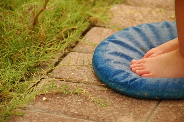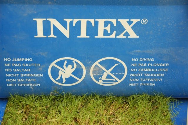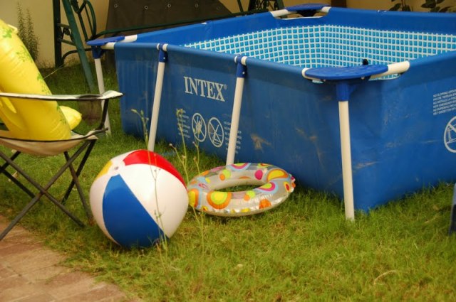 Lai arī cik tas nebūtu izšķērdīgi, ūdens baseinā ir jāmaina gandrīz katru dienu. Šajā karstumā jau pāris stundu laikā tas saglumē tā, ka sāk veidoties kaut kas bioloģiskajam ierocim līdzīgs:)