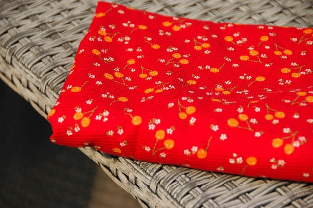 Gandrīz aizmirsu pielikt šo bildi ar blūzītei paredzēto audumu. Vafeļfaktūrveidīgs kokvilnas audums.