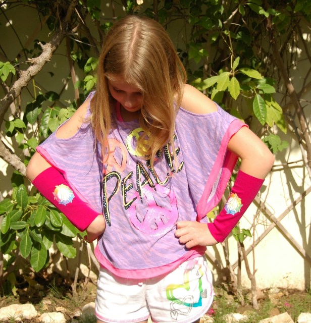 Šis nu gan bija projekts – zibenszellis. Meita izlūdzās pāris roksilžus ar pacifistu zīmēm. Kad biju sešus tādus uzšuvusi (tie būšot pa vienam katrai draudzenei), tad meita atcerējās, ka viņai esot vēl divas draudzenes…