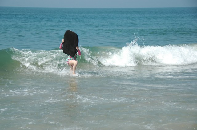 Pludmales ainiņas. Lielā jaunkundze no sirds izvizinājās ar savu “boogie board“. Arī es noķēru pāris viļņus. Tiku arī pie noskrāpētiem ceļiem, bet tas jau tikai tāds sīkums.