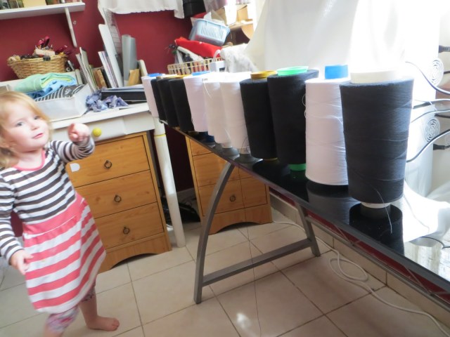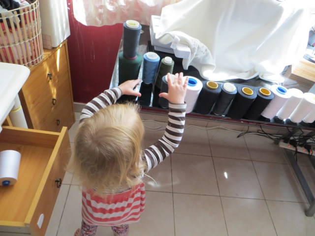 Kamēr es izmisīgi pētīju sava overloka iekšas, mana mazā jaunkundze nedaudz piekārtoja overloka diegus.