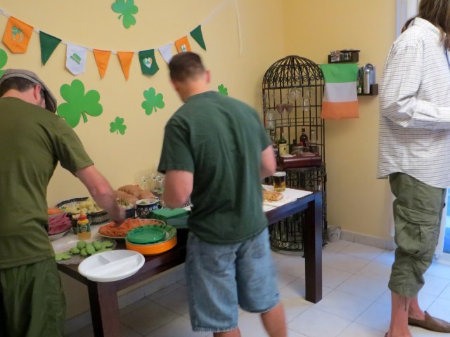 Un tā, esam nosvinējuši kārtējo Sv. Patrika dienu. To darījām jau piektdien, un ar neredzēti lielu vērienu. Bija ieradušies aptuveni 30 pieaugušo, un tikpat daudz mazo Sv. Patrika dienas svinētāju. Gatavojāmies nopietni, ar visu īru sodas maizes cepšanu, īru kafijas gatavošanu, mūzikas un spēļu aranžēšanu. Un varbūt arī tas ir īstais iemesls, kāpēc mūsu Patrikdienas ballīte ir tik iecienīta – izklaidējas visi, kā nu kurš māk. Mazie meklē dārgumus, skrien ar baloniem, meklē Īriju pasaules kartē (ar aizsietām acīm), lielie – saspiežās mūsu mazajā virtuvītē un risina dzīvelīgas sarunas, vai arī laiski izlaižas krēslos un bauda dārza burvību.