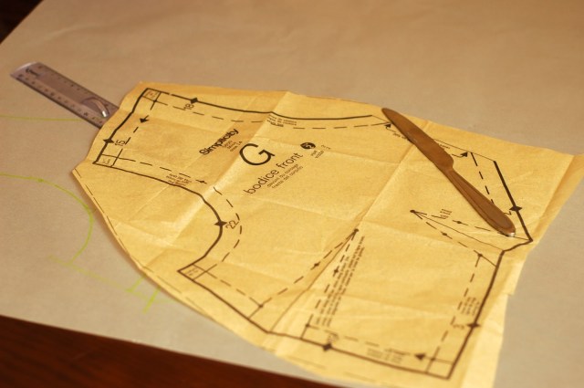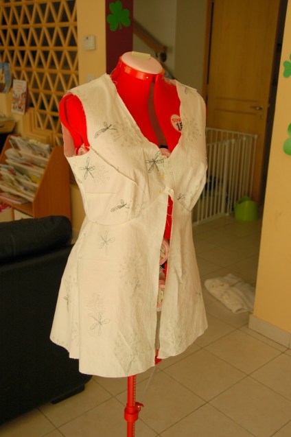 Esmu ķērusies pie pāris vintidžīgo piegriežtņu realizēšanas. Šī ir pirmā kleita. Nedaudz kaitina piegrietnei jau pievienotā vīlu tiesa, bet simpatizē iešuvju viduslīnijas. Burdai tādu nav. Piegrieztni nācās nedaudz pārveidot, tapēc arī veidoju izmēģinājumvariantu no veca palaga.
