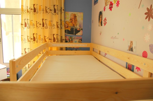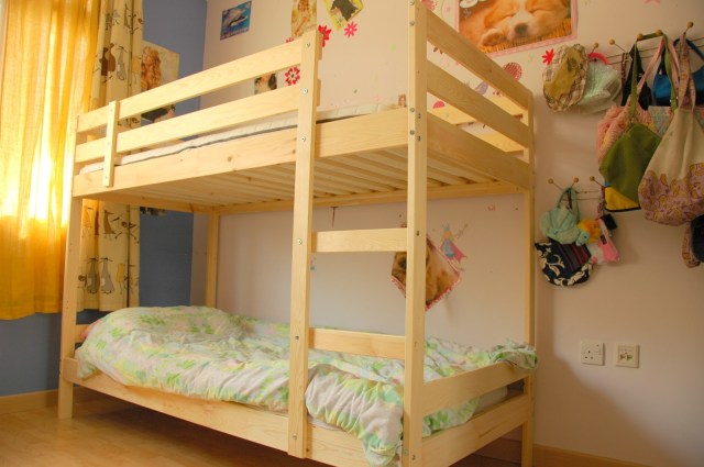 Pirkām pašu vienkāršāko – MYDAL gultu. Šķiet, ka būs gana stabila, ja jau izturēja pat manus kāpelējumus otrajā stāvā.