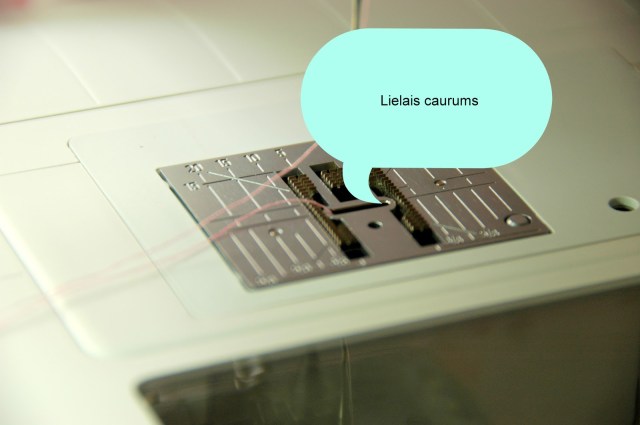 Lūk, ilustrācijai – adatas plate manai Bernina 580. Redzat, cik tai ir liels atvērums adatai? Burvīgs fakts, ja ir vēlme paspēlēties ar dekoratīvajiem dūrieniem – piemēram, Adventa kalendāra zeķes šujot. Ne tik burvīgs, ja ir vajadzība nošūt krekla krādziņu maziem, glīšiem dūrieniem. Nē, nepārprotiet, nav jau tik traki. Var jau šūt ar to pašu pamatkomplektācijas adatas plati, bet rezultāti esot labāki ar taisnā dūriena adatas plati.