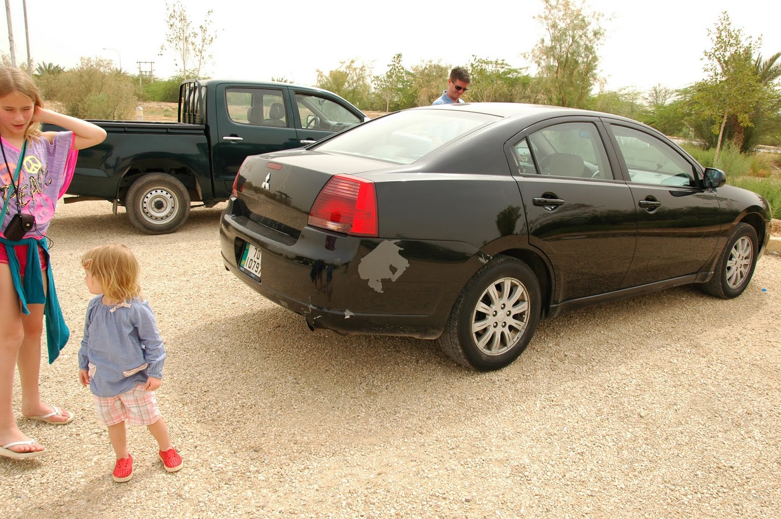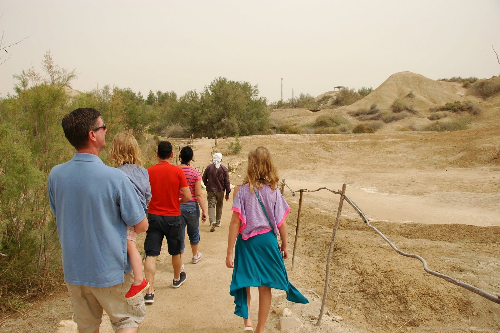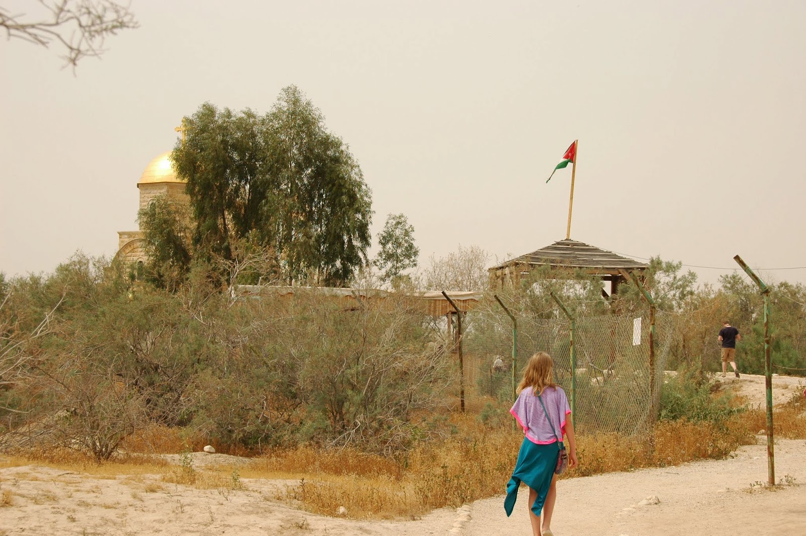 Nopērkam biļetes, mūs visus draudzīgi sasēdina mazā busiņā un kaut kur ved. Izkāpjam un tālāk jau dodamies kājām. Sajūta diezgan sirreāla. Apkārt nekurzeme, kura tikai pavisam nesen demilitarizēta. Tālumā varot redzēt Džeriko pilsētu Izraēlas pusē Rietumkrastā. Es neko neredzu, jo attopos, ka esmu briesmīga māte, un esmu aizmirsusi atgādināt savai lielajai meitai uzvilkt garām pastaigām piemērotus apavus. Nu ko, iešļūcenes arī derēs:)