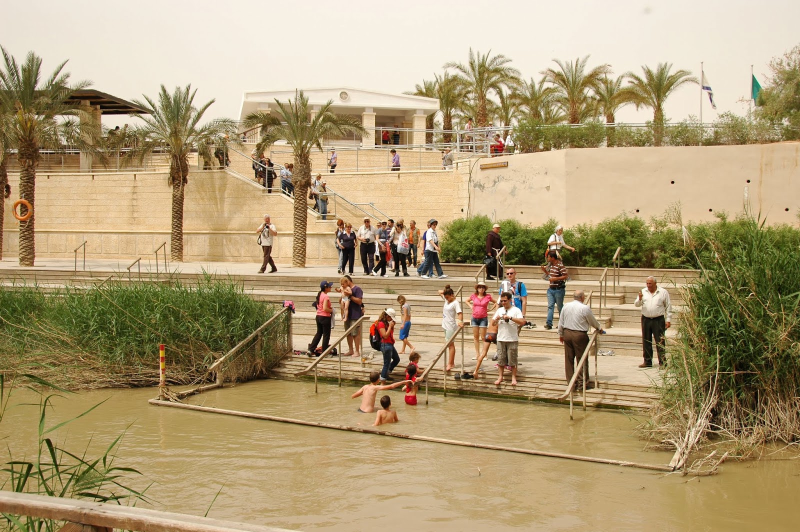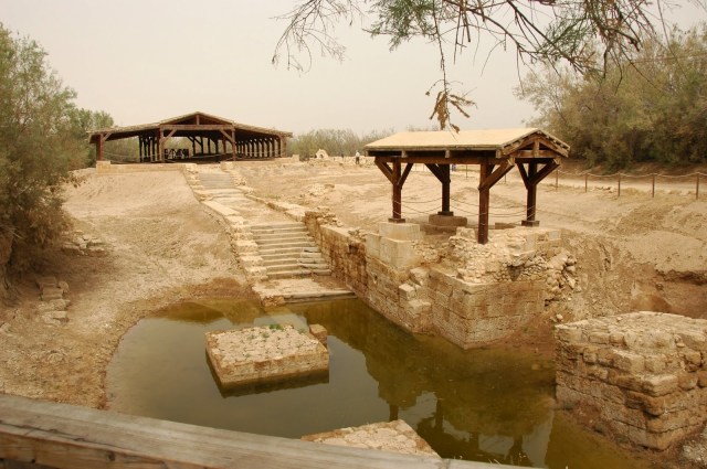 Jēzus kristīšanas vietu pie Jordānas upes. Jep, jep, jep, to pašu īstāko vietu, kur tas esot noticis.