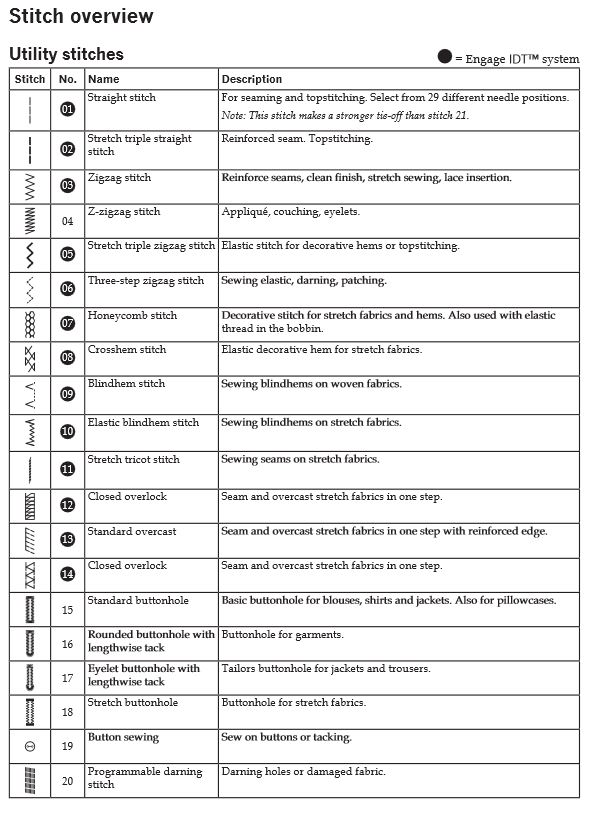 Kā jau teicu, šī šujmašīna tiek pozicionēta kā portatīvā, viegli līdzpaķeramā šujmašīna, tāpēc vēl jo iespaidīgāks izskatās šīs “pasītes” piedāvāto dūrienu klāsts: