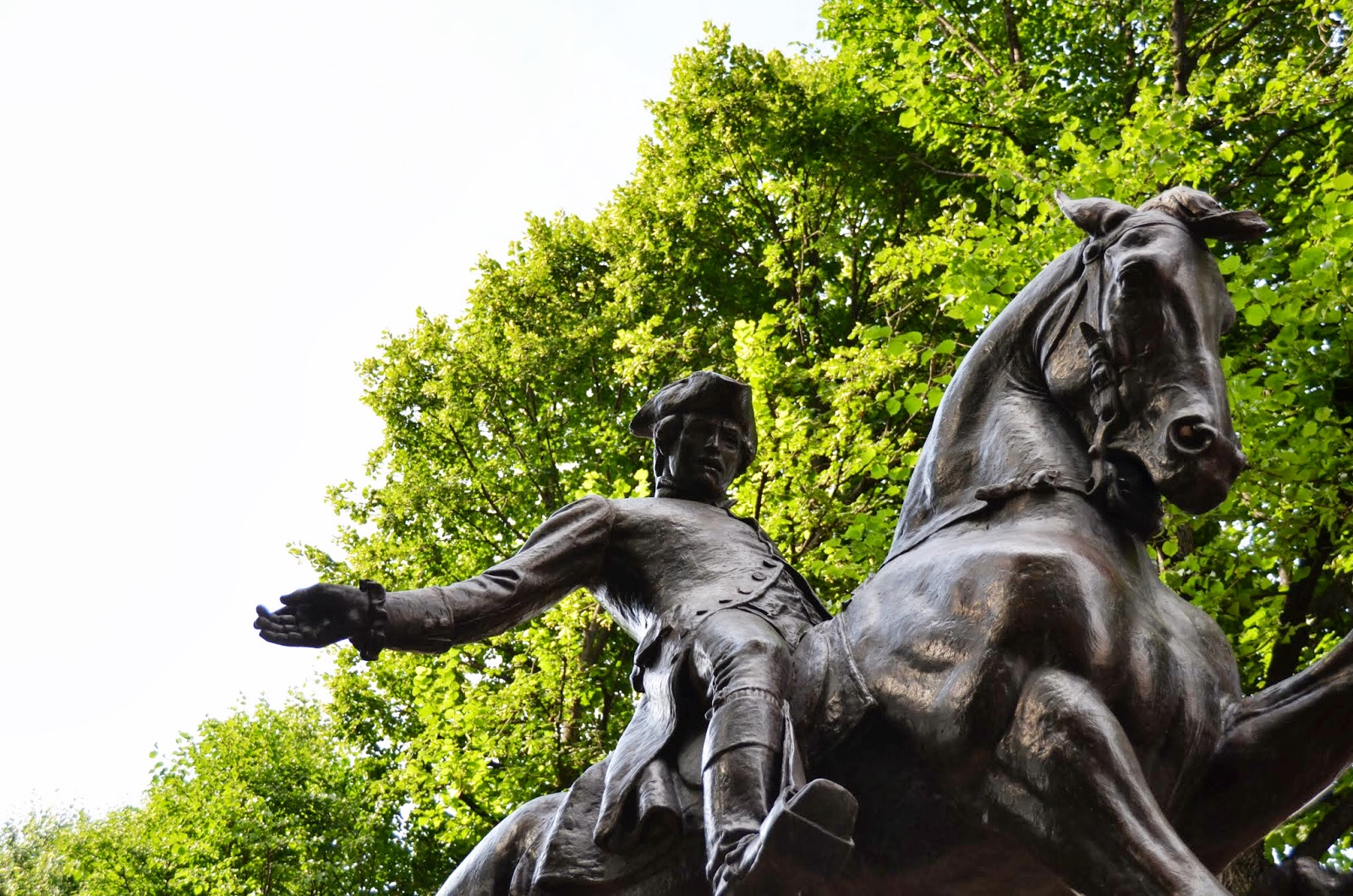 Esam veiksmīgi sasnieguši Old North Church un nedaudz pagozējamies pie Paul Revere pieminekļa.