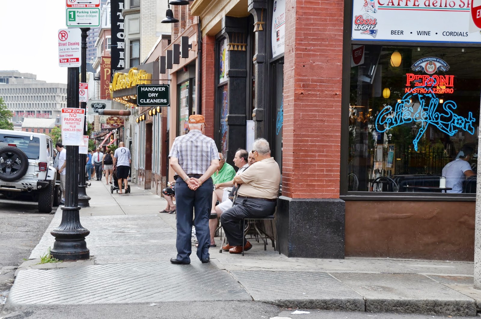 Ar vienu ausi dzirdēju šos vīrus kaut pārspriežam itāļu valodā. Iespējams, ka šie runāja par turpat blakus esošo Mike’s Pastry veikala plaukstošo biznesu, kur itāļu gardumi vilināt vilina. Es turos kā vīrs, un atsakos no kārtējā kanoli, jo par iepriekšējo devu vēl joprojām priecājas mans celulīts.
