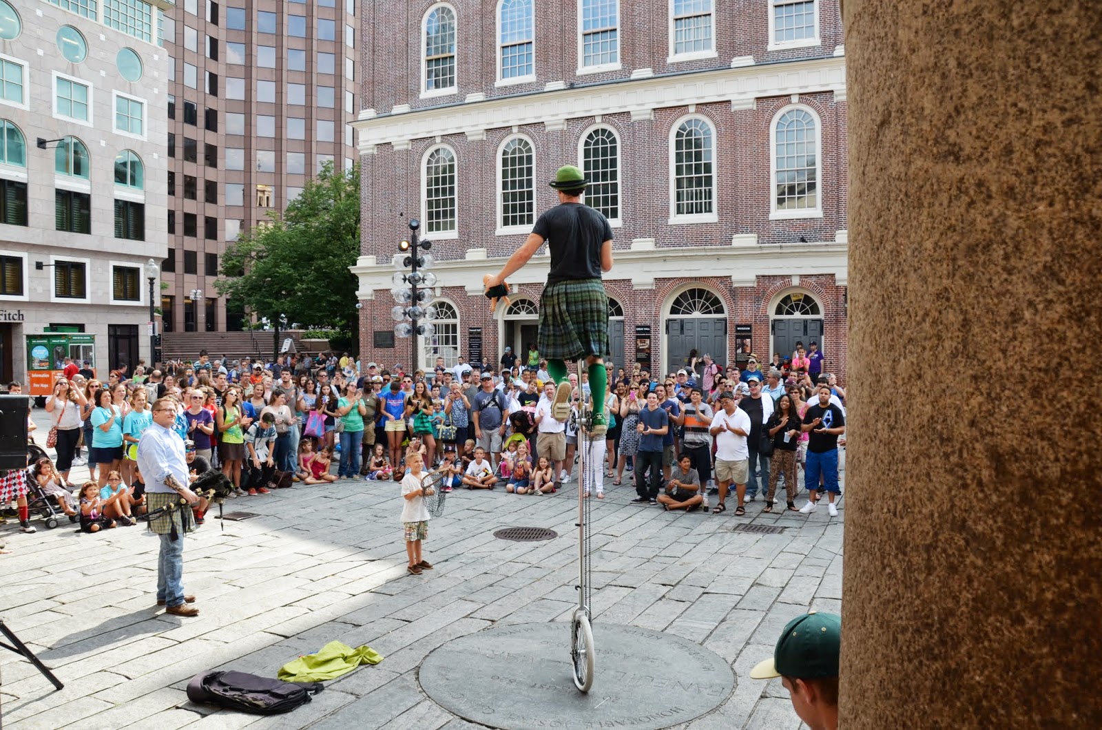 Vikipēdija par Quincy Market nemelo, un tur patiesi var sastapt dažādus ielas māksliniekus/triku meistarus.