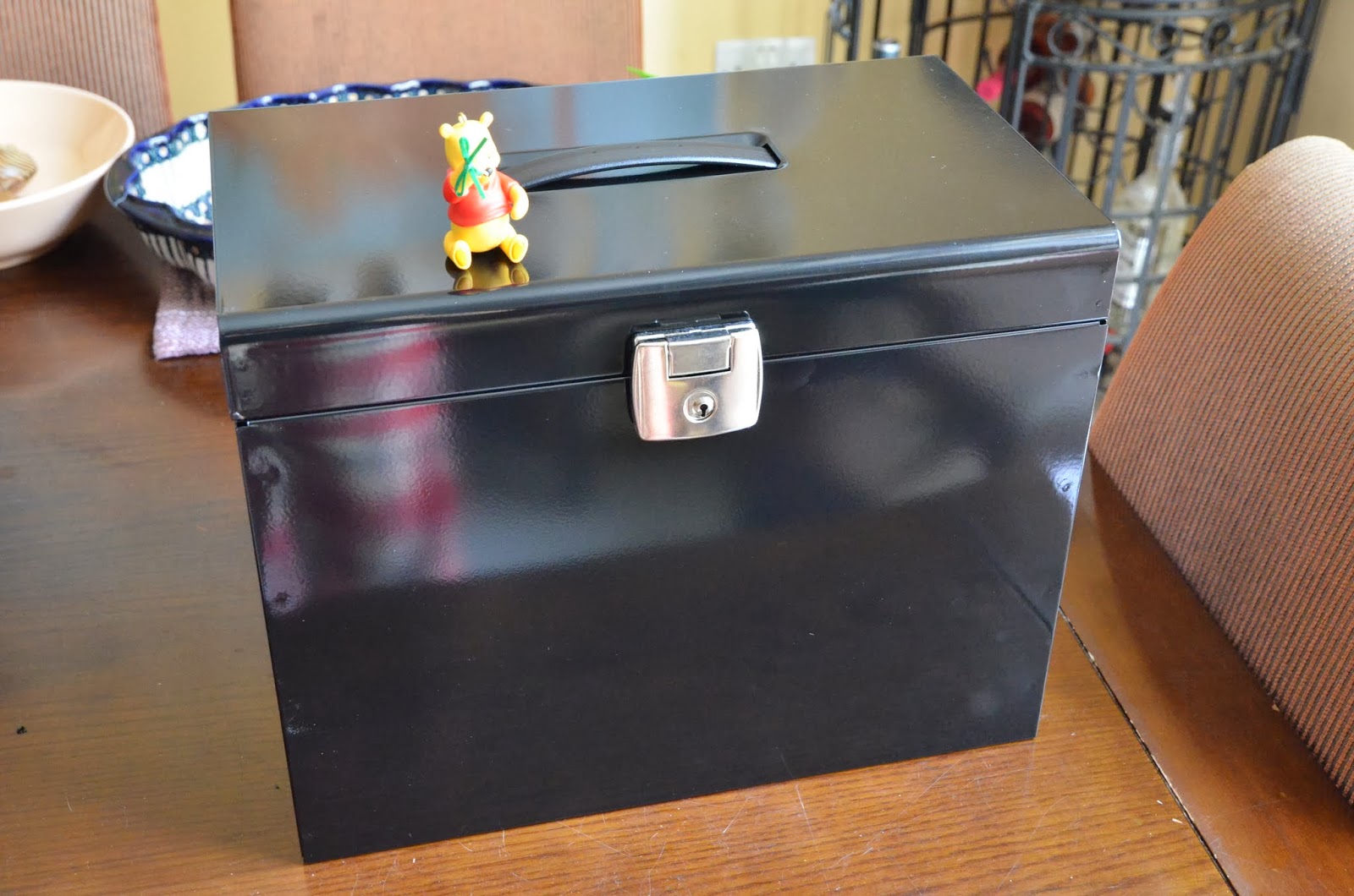 Un tādas izskatās manas ģimenes svarīgāko dokumentu jaunās mājas. Nav pārliecības, vai šī kaste ir ugunsnedroša, bet par pašas “viss pie vienas vietas vienā vietā” idejas realizāciju man ir liels prieks. Ceru, ka vairāk nedzirdēšu ģimenes locekļu izmisīgos saucienus :”Kur ir mana pase, aviobiļetes, zobārsta pierakstu karte utt.?”