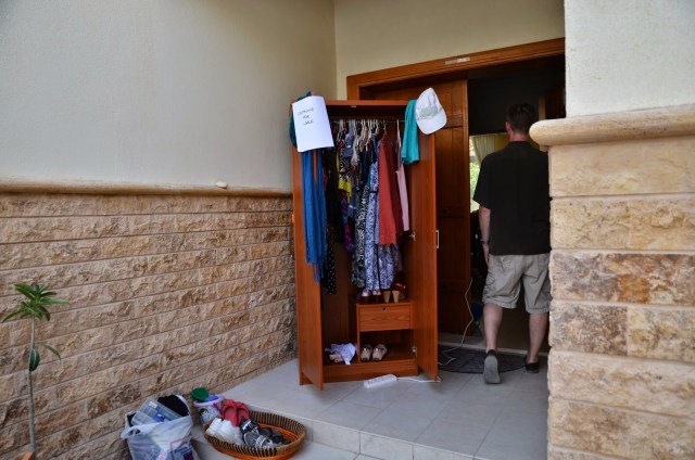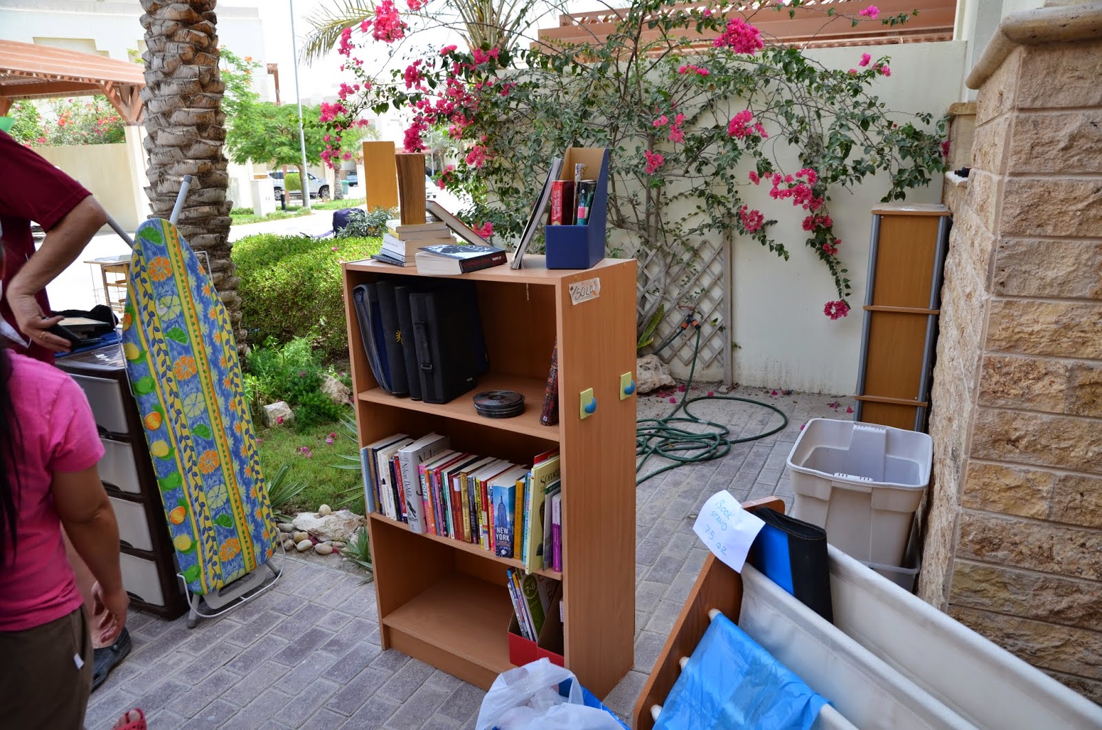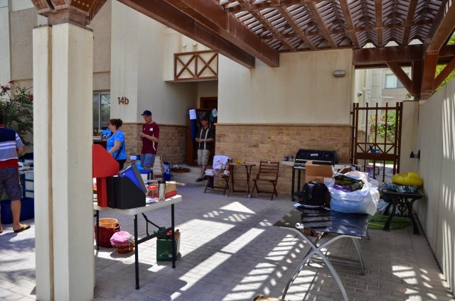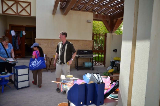 Pie mana drēbju skapja arī bija zināma rosība, un šo to izdevās pārdot. Lielākā interese par skapja saturu nāca no auklīšu puses, kuras pārsvarā nāk no Filipīnām un kuru kāju izmēri parasti nepārsniedz 37. izmēru. Pāris dāmas pacilāja manas kurpes un skumji nopūtās – nu ja, šīs 39. izmēra kurpes man laikam tomēr nederēs. Ak, antropoliģiskās atšķirības:)