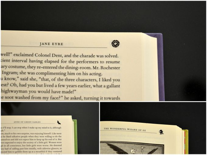Izdevēji ir patiesi piedomājuši pie katras detaļas – vāki ir no ādas imitācijas un ar reljefiem burtiem. Katrai grāmatai lapas augšpusē ir sava piktogramma. Sīkumi, bet patīkami! Pilnīgi vai prasās paķert Džeinu Eiru un palīst zem siltas segas…
