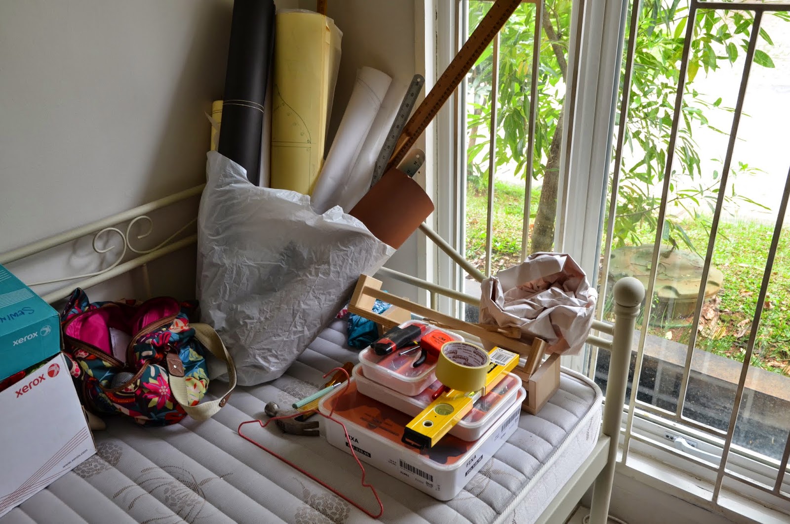 Un to visu pārvedi no Dohas, vai arī uz vietas jau tika iegādāts kaut kas? Super darbnīca, sapnis. Iepazīstināsi ar vietējiem veikaliem, kas šajā vietā ir raksturīgs – no audumiem, krāsām, dzijām? Ļoti interesanti.
